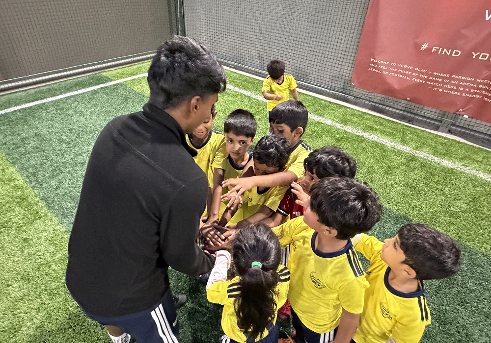 training batches and weekend camps, children learn important life skills like teamwork,